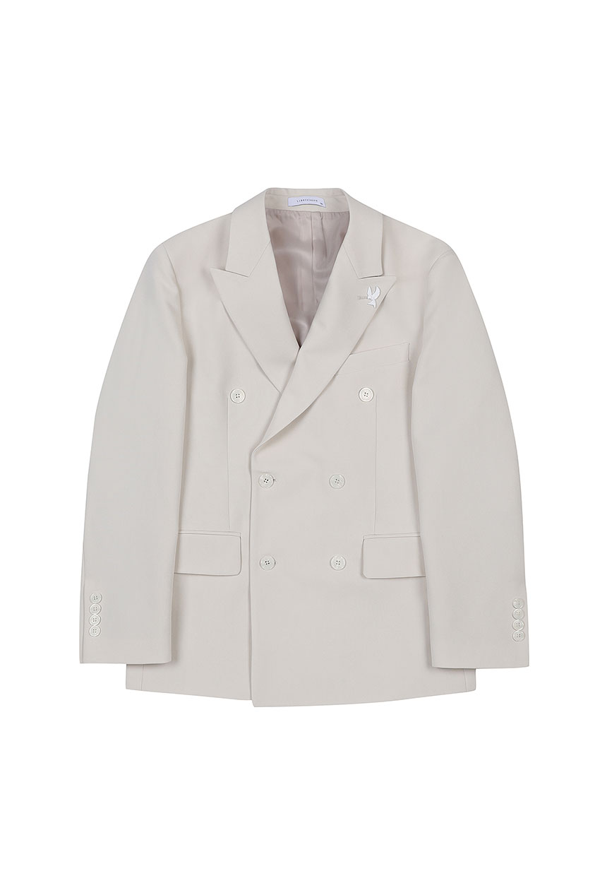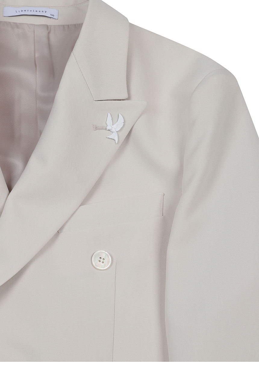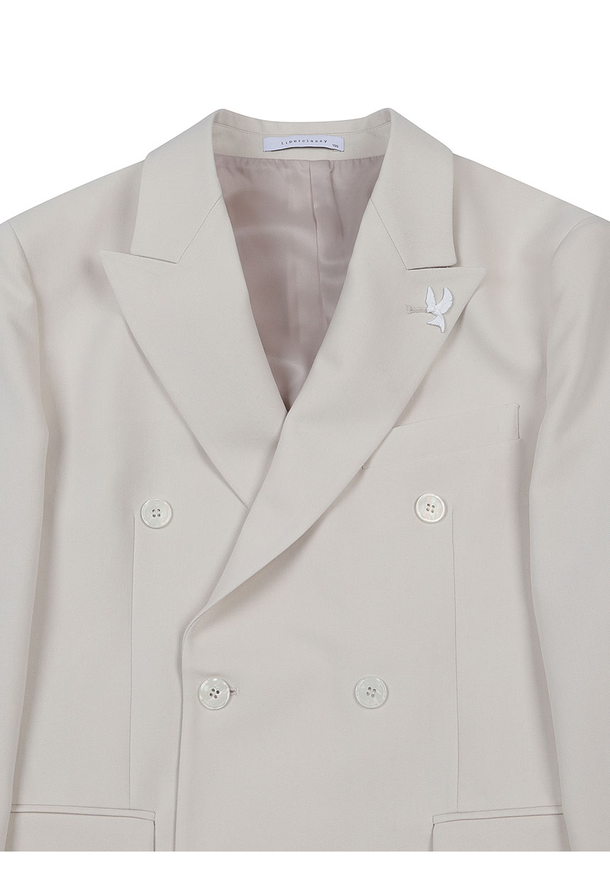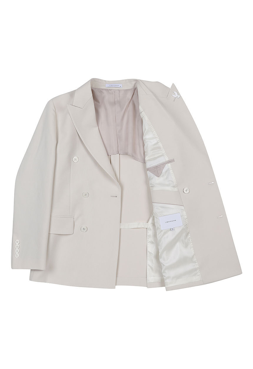 アイボリーレンフィットツイル組織ダブルセットアップジャケット