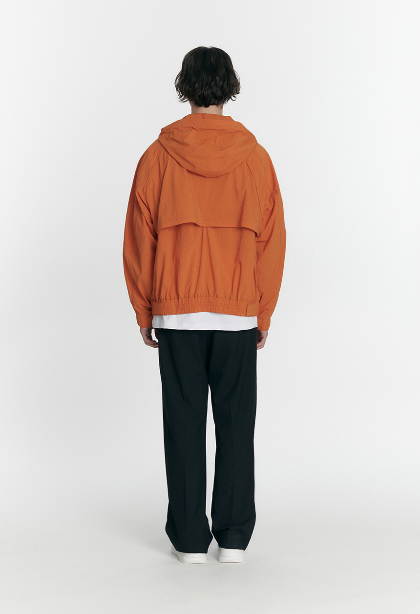 オレンジオーバーフィットナイロンフードジャンパ