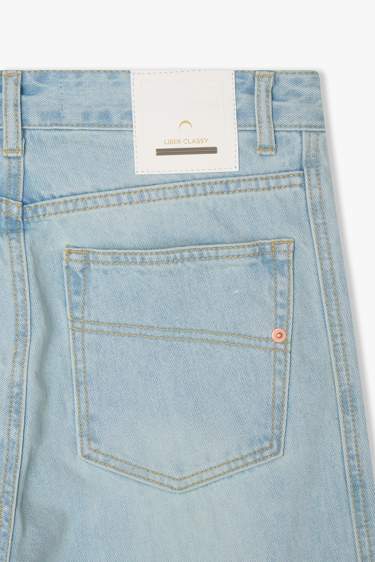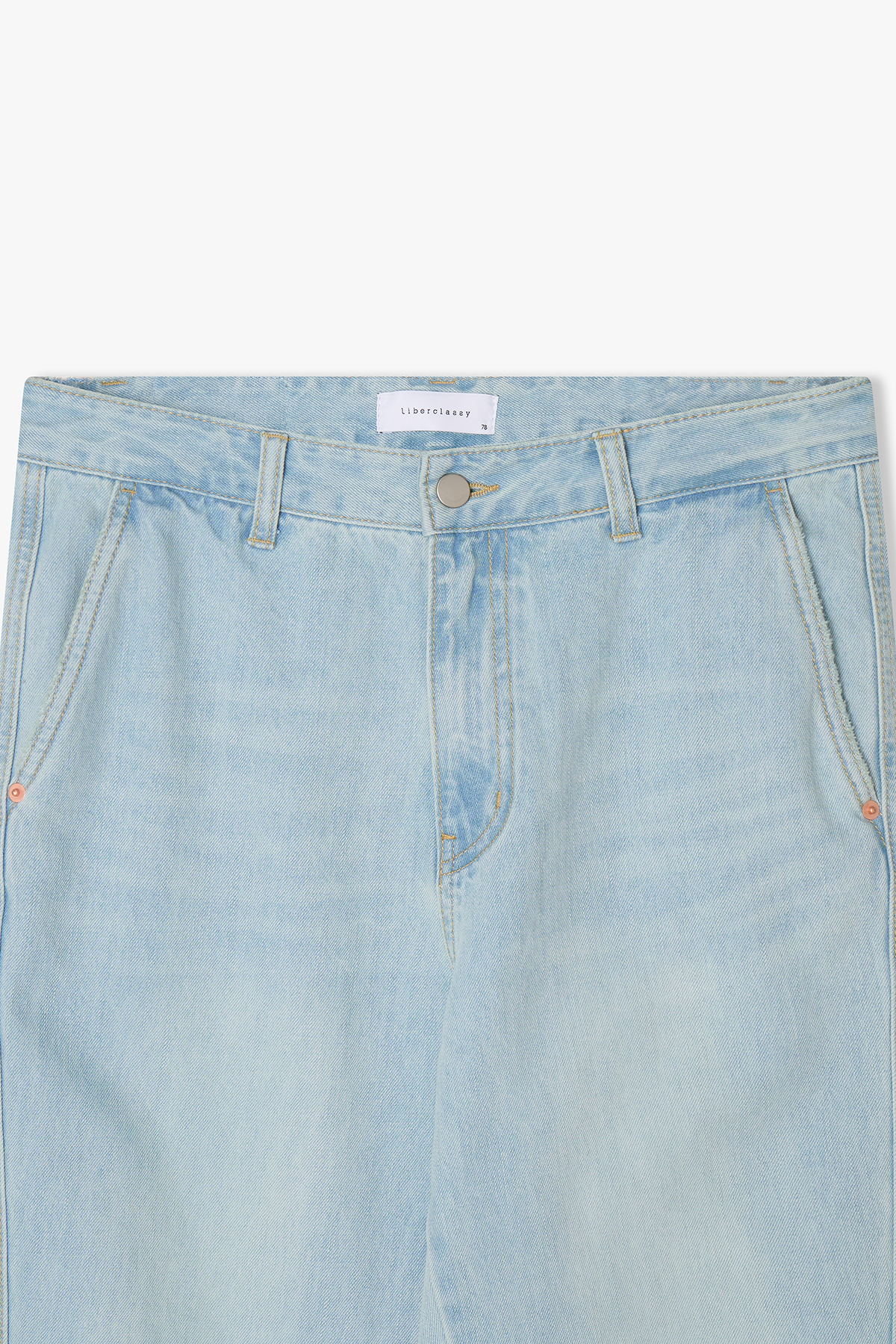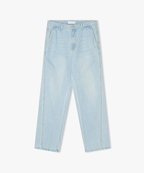 ワイドフィットサイド切開ラインデニムパンツ