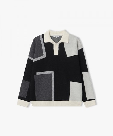 ジャカードカラーブロックカラーニット